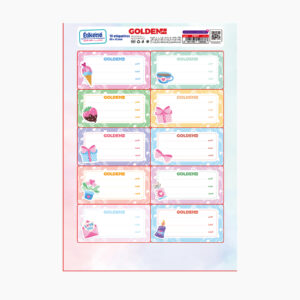 Étiquettes scolaires autocollantes – Gift & Sweet (cadeaux, glaces & nœuds) | 10 étiquettes | GOLDEN SBM