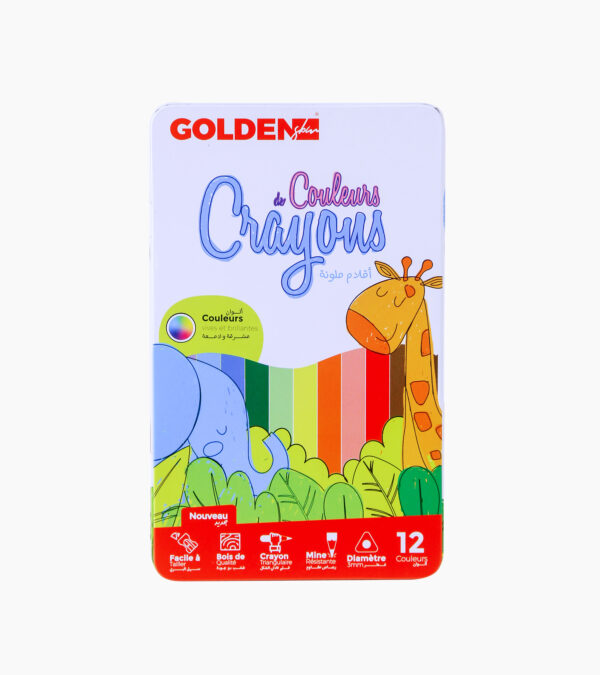 🎨 Crayons de couleur en boîte métal – 12 couleurs GOLDEN SBM