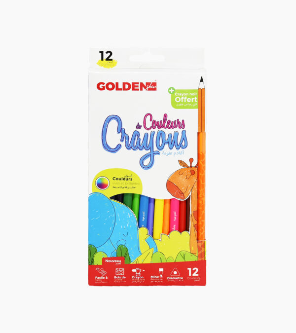 ✏️ Crayons de couleurs – Étui de 12 + 1 crayon noir offert – GOLDEN SBM
