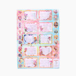 Planche d’étiquettes scolaires adhésives GOLDEN SBM avec personnages cartoon roses.