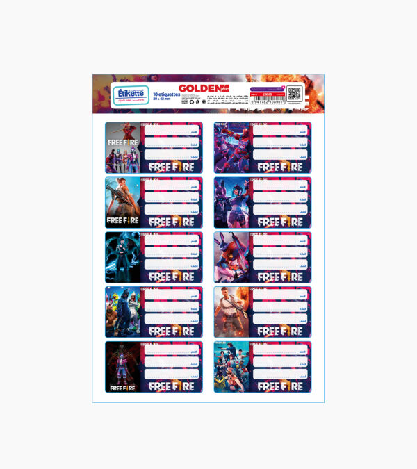Étiquettes scolaires autocollantes – Free Fire | 10 étiquettes | GOLDEN SBM