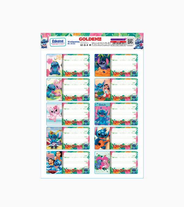 Apportez une touche d’aventure et de fun aux fournitures avec les étiquettes scolaires Lilo & Stitch – GOLDEN SBM (Ref. 25066).