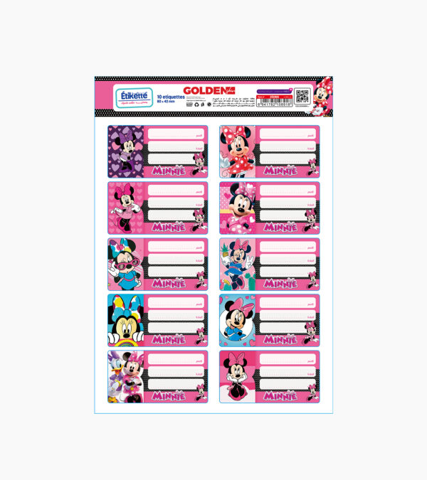 Étiquettes scolaires autocollantes – Minnie Mouse Disney | 10 étiquettes | GOLDEN SBM