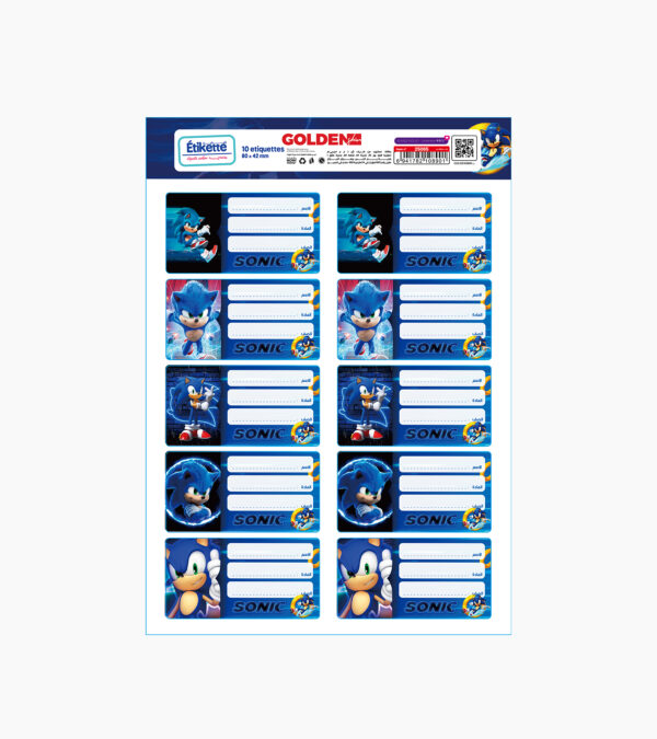 Étiquettes scolaires autocollantes – Sonic | 10 étiquettes | GOLDEN SBM
