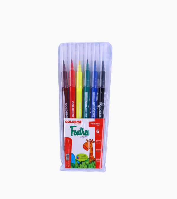 Étiquettes : feutres 12 couleurs, feutres 6 couleurs, feutres coloriage, feutres GOLDEN SBM, feutres scolaires, fournitures scolaires, loisirs créatifs