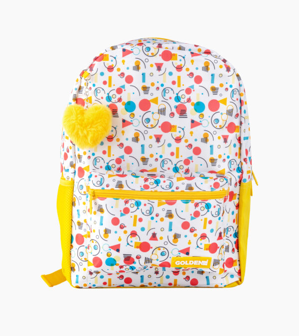 Sac à dos fille FLOWER – Imprimé coloré, porte-clé peluche, léger et confortable | Primaire & Collège | GOLDEN SBM – Jaune