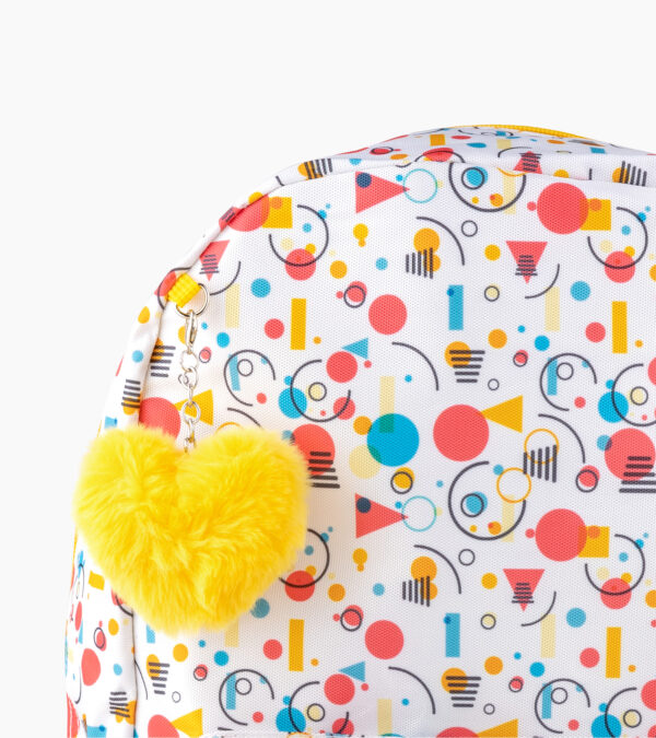 Sac à dos fantaisie pour fille avec imprimés colorés et porte-clé peluche. Spacieux, léger et confortable, parfait pour l’école et les activités quotidiennes.