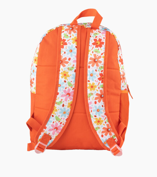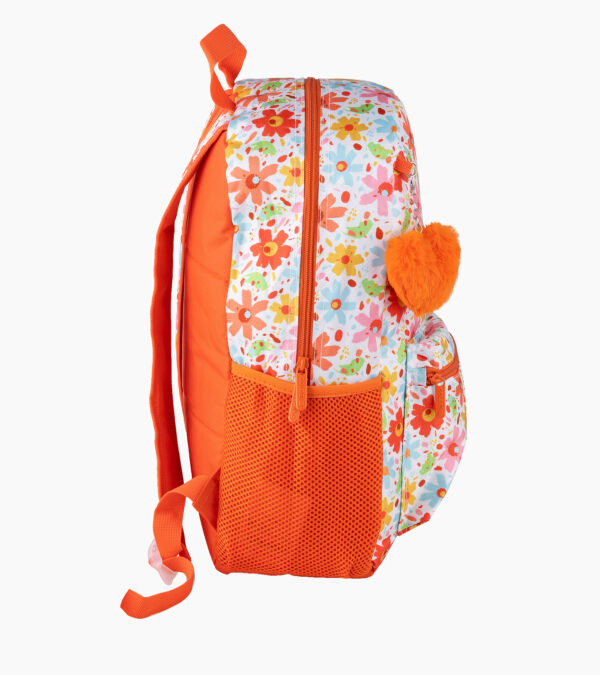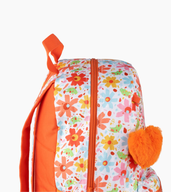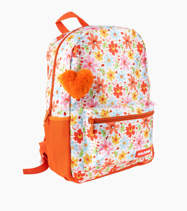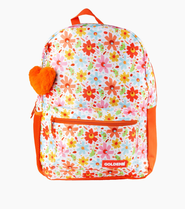 Sac à dos fille FLOWER – Imprimé coloré, porte-clé peluche, léger et confortable | Primaire & Collège | GOLDEN SBM – Orange