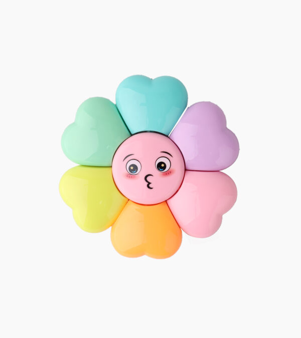 Avec son design unique en forme de fleur souriante, il réunit 6 surligneurs colorés dans un seul accessoire compact et pratique.
