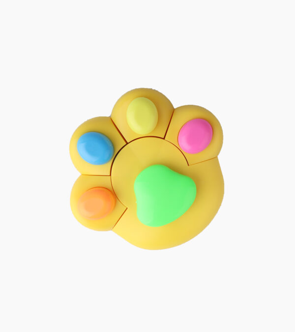 Découvrez le surligneur fantaisie en forme de patte 🐾, pratique et amusant, regroupant 5 couleurs vives dans un format compact.