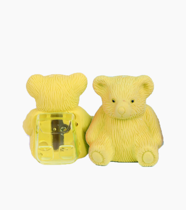 Taille-crayon en forme d’ours avec gomme intégrée, pratique et ludique pour les enfants.