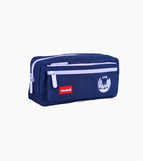 Trousse scolaire Nature – Trois compartiments | Primaire & collège | GOLDEN SBM – Bleu